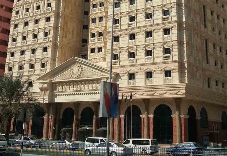 The Crystal Tower is located near the Al Ittihad Square and Royal Rose bus stops, which can be reached within a 10-minute walk.