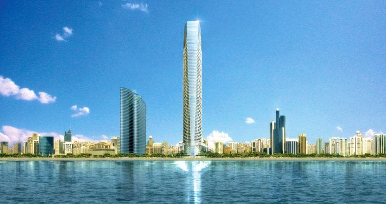 Landmark Tower is a waterfront mixed-use residential complex located near Corniche Street, Abu Dhabi Beach, and Abu Dhabi City Corniche Park. The 72-storey skyscraper has a height of 1,063 ft. (324 m) and is the third tallest building in the capital. The project was developed by Buro Happold Engineering. It was completed in 2013 and consists of 140 residential units.