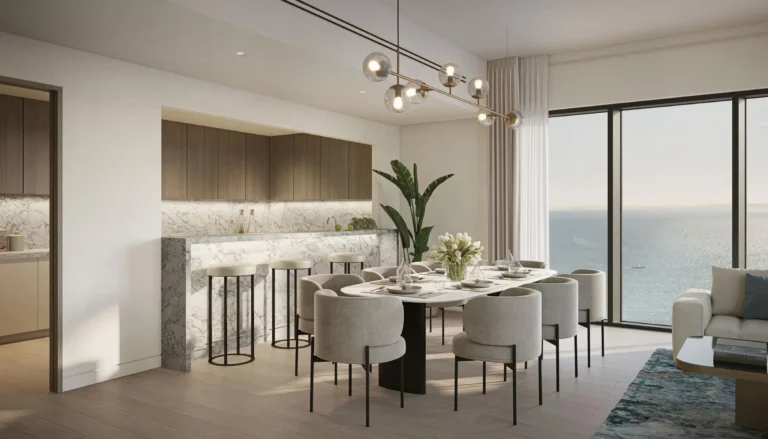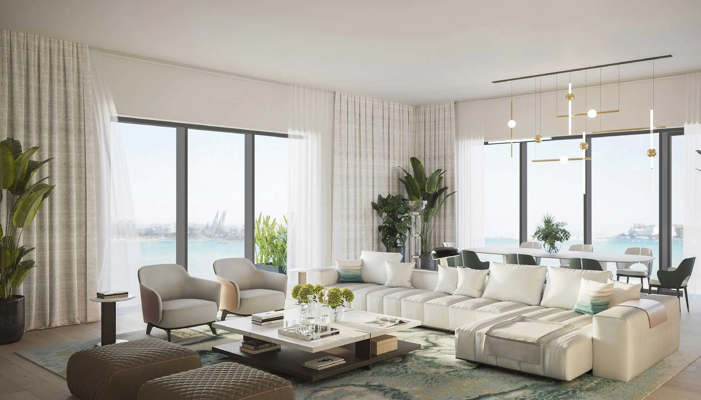 1–4 bedroom waterfront apartments, including duplex options, each designed with sea or skyline views.