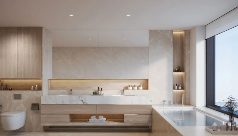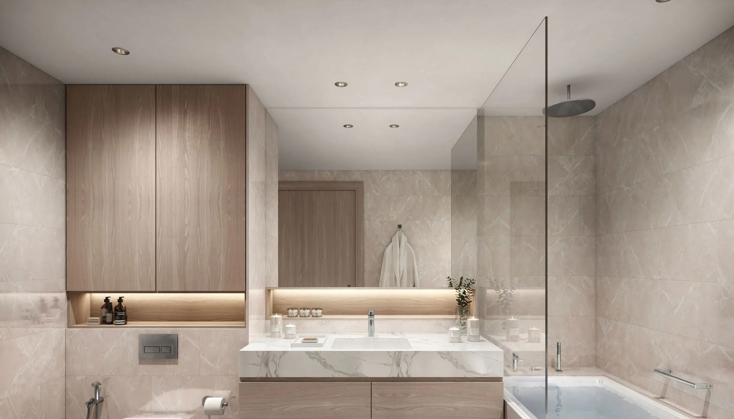 It lists 1–4 bedroom apartments from AED 1.65M, with direct access to Makers beach and premier amenities. Every residence includes spacious balconies, built-in kitchen appliances, light timber palettes, balanced by sea or city skylines. Interiors combine natural textures, warm wood, and reconstituted stone - a polished reflection of Abu Dhabi’s coastal elegance.
