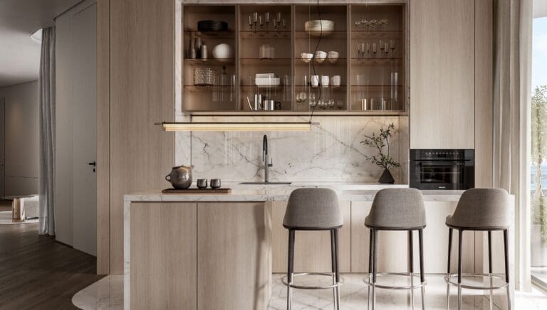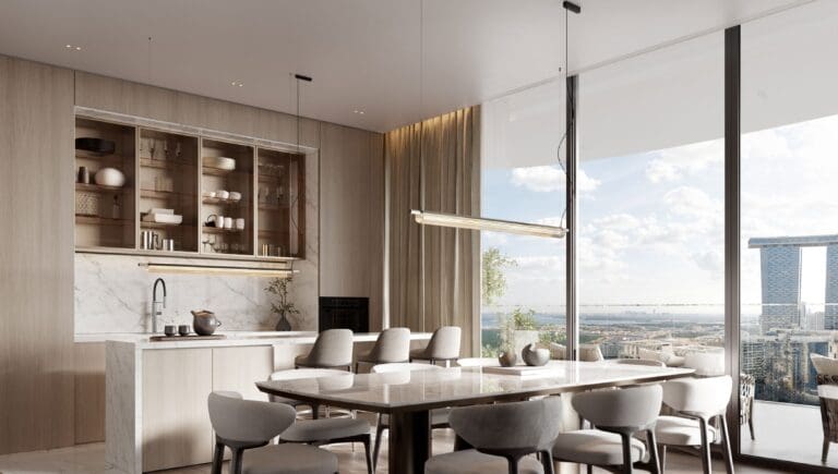 يتكون المجمع من ناطحتي سحاب أنيقة متصلة بجسر أنيق. سيحتوي هذان البرجان على شقق مفروشة بالكامل مكونة من 1-3 غرف نوم، وشقق دوبلكس بغرفتي نوم، وشقق بنتهاوس فيلات سكاي فيلا. مع وجود خمسة مساكن فقط في كل طابق، يضمن المشروع أقصى قدر من الخصوصية والهدوء للسكان. سيتم تجهيز كل عقار بنظام المنزل الذكي وتقنية VLED لتنقية الهواء من Vortex Biotech وأنظمة تنقية المياه. يبلغ متوسط سعر الشقة المكونة من غرفة نوم واحدة 2.2 مليون درهم إماراتي (594 ألف دولار أمريكي).