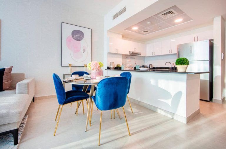 يوجد في المجمع 207 شقة سكنية و217 شقة فندقية بتشطيبات عالية الجودة ومرافق حديثة. تتوفر وحدات سكنية للشراء بمساحات تتراوح بين 49 و118 متر مربع (530 إلى 1,274 قدم مربع). تبدأ أسعار العقارات من 599,000 درهم إماراتي (163,000 دولار أمريكي) وتصل إلى 2,500,000 درهم إماراتي (680,000 دولار أمريكي).