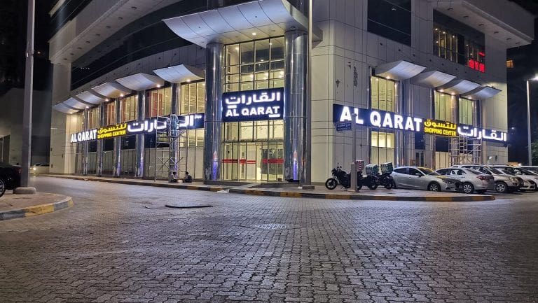 Al Qarat Shopping Centre and Hamdan Centre are located along the 4 km street, and there are many shops selling specialty goods, such as Arabian fabrics and scarves, souvenirs, and jewellery.
