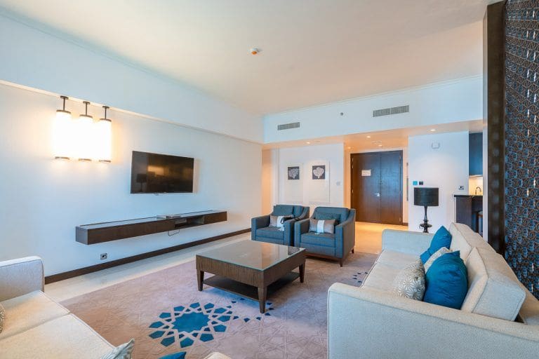 The initial cost of a 1-bedroom apartment in the Fairmont Marina Residences amounts to AED 1,900,000 (USD 518,000).