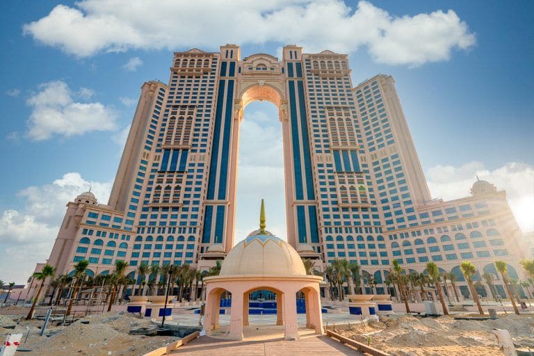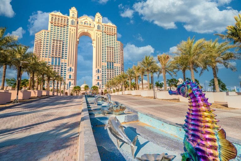 Fairmont Marina Residences Abu Dhabi is a collection of beautiful beachfront residences with exclusive resort amenities, launched by the master developer National Investment Corporation (NIC). The premium apartments are located in the Marina City area, on Marina Island in the northwestern part of Abu Dhabi. Set along the water’s edge, the tallest building on the island has become one of the iconic features of the area, and the entire UAE, capital thanks to its outstanding architecture that combines Arab traditions and postmodernism. The development consists of two elegant 39-storey oriental-style towers connected at the top by an arch. One of the towers is home to the 5-star Fairmont Hotels & Resorts, while the second tower features a total of 249 private 1-4 bedroom residences. Homeowners are provided with either a magnificent view of the Arabian Gulf or the famous Abu Dhabi skyline.