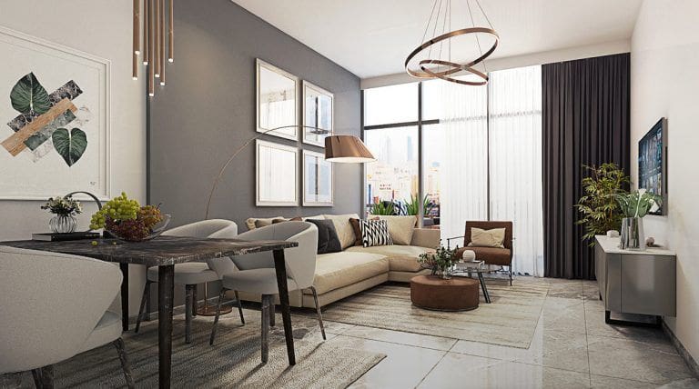 The Gate, due for completion in Q2 2022, features 463 luxury residences for sale and to rent. These include studios, 1, 2 and 3-bedroom apartments of 387-2,195 sq. ft. The residential units are sold fully-furnished and offer a full set of kitchen appliances. The Gate offers a wide range of universal amenities such as a swimming pool, children’s zone, landscaped areas, bocce play area and a running track as well as other facilities. One can purchase a 1-bedroom apartment of 613 sq. ft. for AED 521,000 (USD 142,000).