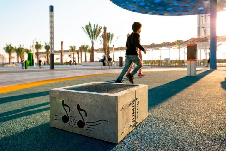 Masdar Park also offers a number of world-class facilities such as a music wall, art installations showcasing sustainability and a children’s playground. Visitors can interact with The Tree of Light which is made from recycled building materials and changes its colour on touch. Moreover, it is possible to charge digital devices and mobile phones at the solar-powered benches in Masdar Park. Besides a picnic area, the development features F&B outlets in solar-powered recycled shipping containers. For outdoor exercise, there is a Al Mamsha trail which is more than 18,000 ft long and offers the latest exercise equipment, which is perfect for walking, biking, fitness sessions and running.