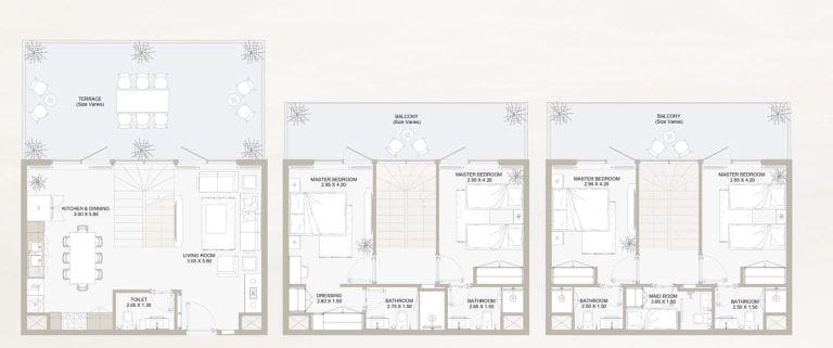 Plaza will feature 348 residences, including studios, 1 and 2-bedroom apartments, and 4-bedroom townhouses, with living areas ranging from 355 sq.ft to 2,346 sq. ft. Each residence includes a balcony or terrace, offering a relaxing space with panoramic views of the community, and townhouses will be equipped with additional inner courtyards, staff rooms, and walk-in closets in the bedrooms.