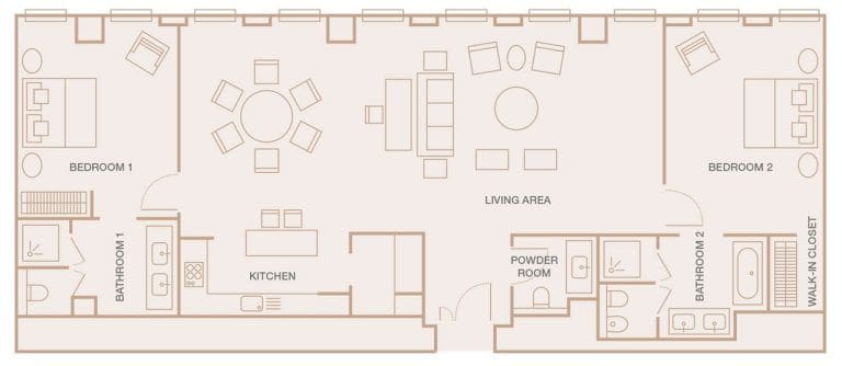 В 34-этажном комплексе к покупке представлены стильные апартаменты с 1–3 спальнями и дуплексы с 2 спальнями. Площадь недвижимости варьируется от 59 кв. м до 314 кв. м. Дизайн апартаментов вдохновлен атмосферой арабских базаров — в декоре используется качественный текстиль, позолоченные детали декора и акцентные произведения искусства. Планировки резиденций предлагают просторные гардеробные, светлую гостиную с обеденной зоной, оборудованную кухню и дамскую комнату. Панорамные окна откроют жителям красивые виды на Арабский залив и живописные окрестности острова с урбанистическим ландшафтом.