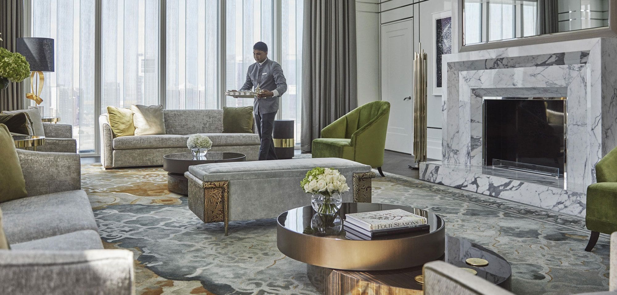 В Four Seasons Private Residences круглосуточно работает обслуживающий персонал: консьерж, парковщик, швейцар и технический специалист. Еще жителям доступны услуги по системе À la carte.
