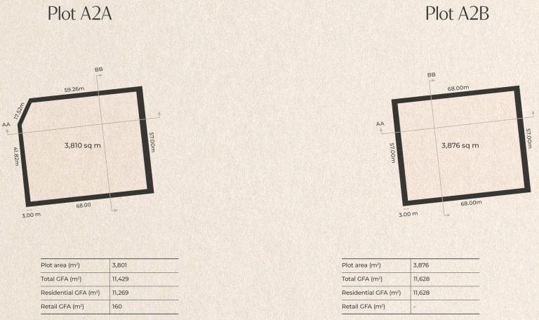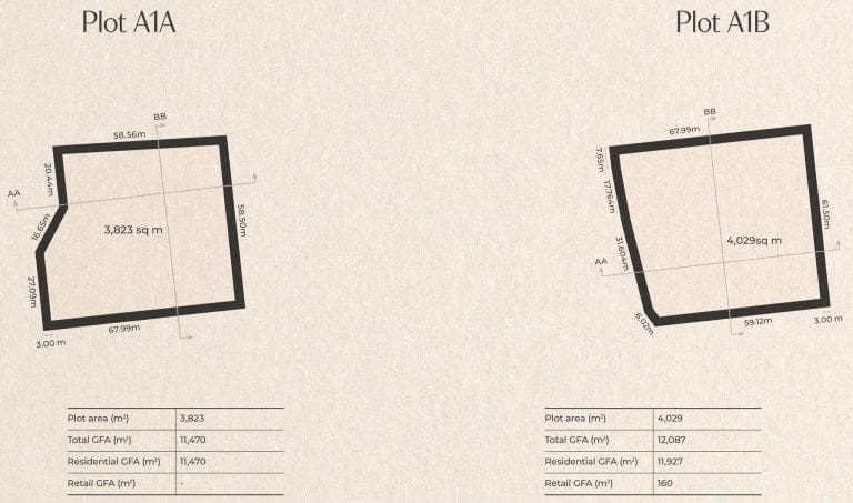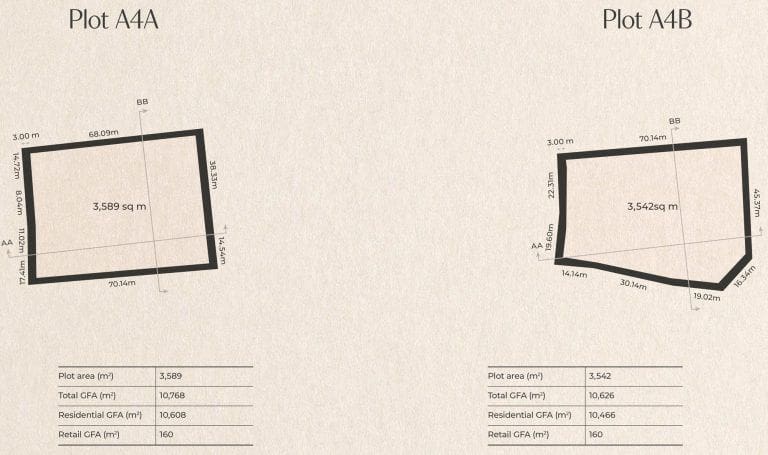 В проекте представлена коллекция из десяти жилых и смешанных земельных участков, площадь которых варьируется от 3,542 кв. м до 4,029 кв. м. Из шести будут открываться виды на канал, а из четырех — виды на парк.