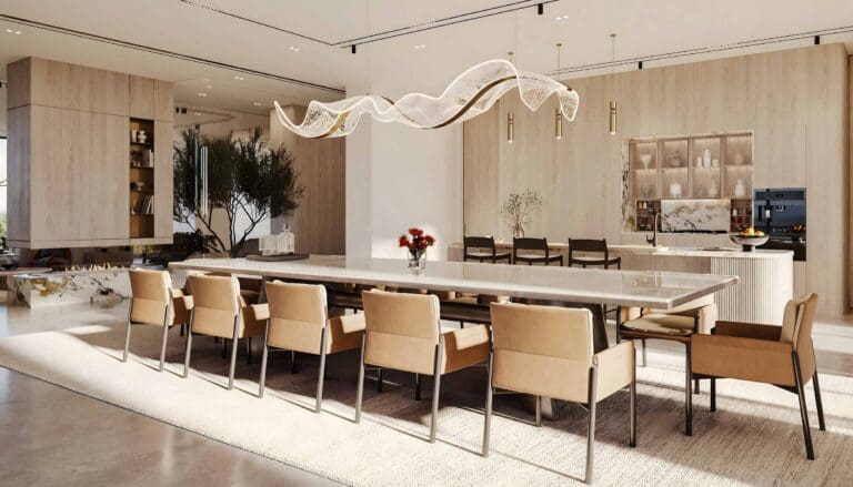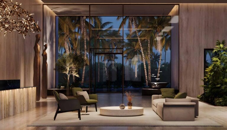 Частный лифт в отдельном лобби обеспечивает прямой доступ в изысканный интерьер дома, где премиальные отделочные материалы, отобранные Итасо Бартоломе Ярца, включают итальянский мрамор и инженерный паркет из древесины. Возможности индивидуальной настройки позволяют жильцам выразить свой стиль, а экологичные решения обеспечивают душевное спокойствие.