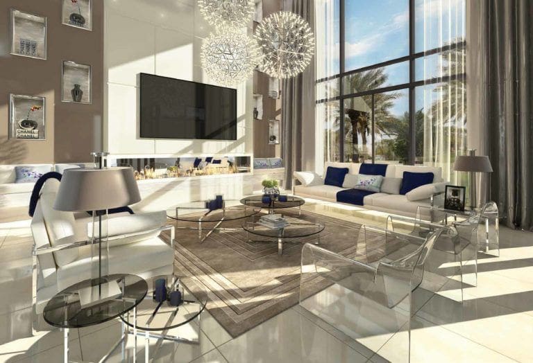 The starting price of a townhouse is AED 5,500,000 (USD 1,497,000). A five-bedroom villa is AED 13,500,000 (USD 3,675,000).