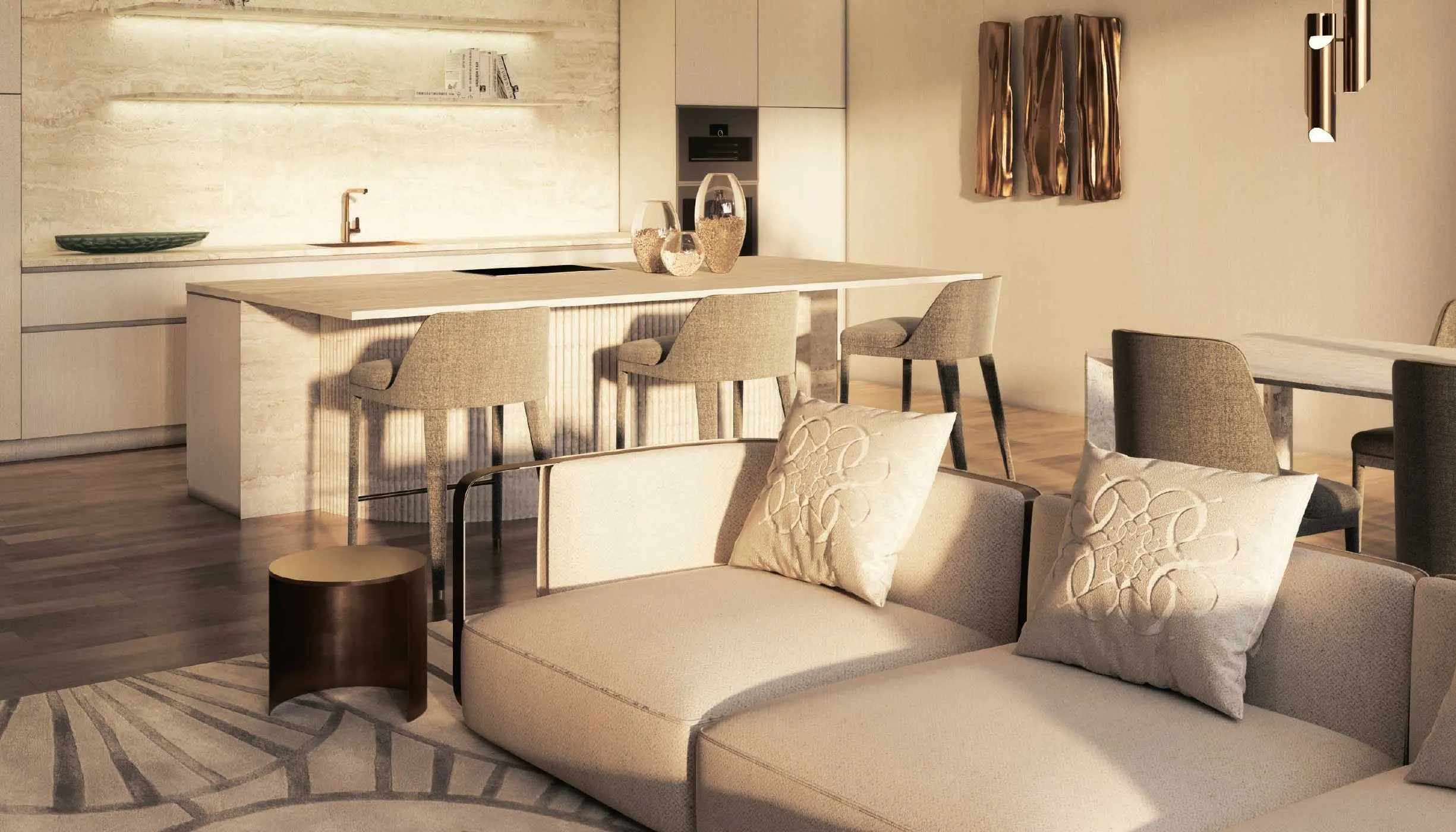 STELLAR offers a curated collection of 1–3-bedroom apartments, 3–4-bedroom garden villas, and 5-bedroom penthouses, all featuring elegant interiors, panoramic sea and park views, and premium finishes inspired by haute couture.