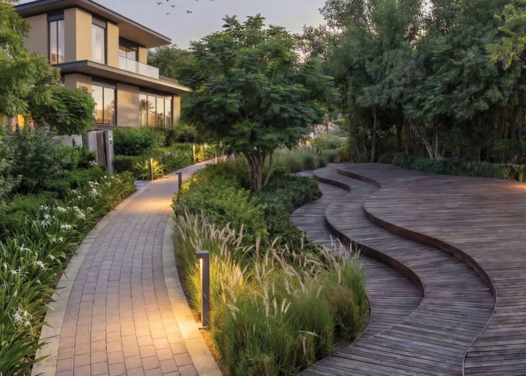 Sobha City in Abu Dhabi is a notably green, wellness-focused community with 60% open space and over 50,000 trees, giving it one of the highest green ratios in the city. The design emphasizes a walkable, breathable lifestyle connected by green corridors.